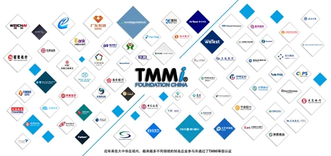 TMMi基金会中国分会成立于2017年,成立以来始终致力推广TMMi,让更多企业以更低的成本获取世界最先进的知识理论和已经被证明的实践。TMMi在中国蓬勃发展,越来越多不同领域的企业参与并通过了TMMi等级认证,目前在大中华区域内,工商银行、交通银行、建信金科、中国农业银行、中国邮储银行、银联商务、深圳证券交易所、中国太平洋保险、泰康保险、泰康人寿、北汽新能源、紫光展锐等不同行业的多家知名企业通过了TMMi各等级认证。